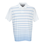 Physique-flattering gradual stripe print polo is engineered so logos fall between the stripes on every shirt, in every size. 95% polyester/5% spandex, 4� oz., Vansport? moisture management, gradual stripe sublimation print at front panel, jersey body, UV protection, antimicrobial, self-goods collar with collar band, Vansport? tagless label, three-button placket, hemmed sleeves, single-needle top-stitching, even-hem bottom with tailored side vents. Imported. S-3XL