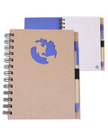 - Recycled hard cover wire-bound notebook with die cut global (earth-shape) cover design.