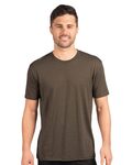 Next Level Mens 4.3 Ounce Tri-Blend Crewneck T-Shirt. 50/25/25% poly/combed ring-spun cotton/rayon tri-blend jersey fabric. Short sleeve crewneck tee. 32 singles, 4.3 ounce fabric. 1x1 baby rib set-in collar. Satin label. With a heather look for all colors.