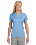 A4 Ladies 4.0 Ounce Poly Performance Short Sleeve T-Shirt. As in N3142, in ladies sizes. 100% Micro Poly Interlock, 4.0 ounces per square yard. Moisture wicking. Odor resistant. Stain release. Ultra tight knit for better printability. Reinforced shoulder seams and double needle cover-stitch hem. Tag free neck. Sublimation and screen print ready. 44+ UPF for UV sun protection.