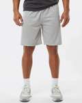 Badger Adult (C2) Sport Mesh Shorts With 9 Inseam. 100% Polyester mesh with solid tricot liner. Double needle hem. 1 1/2 covered elastic waistband and drawcord. 9 inseam.