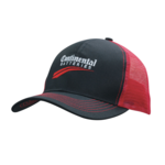 Headwear Professionals Poly Twill Mesh Back Cap. 6-panel structured cap with pre-curved visor with contrast stitching that matches the mesh. Twin hole plastic snap.